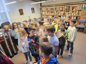 Dnes se naši druháci „pasovali na čtenáře“ v Městské knihovně. Během již tradiční akce plnili zadané úkoly, prokázali své schopnosti a čtenářské dovednosti a složili slavnostní přísahu. Snad jim nadšení vydrží. Děkujeme za perfektně připravený program knihovně v Ústí nad Orlicí.